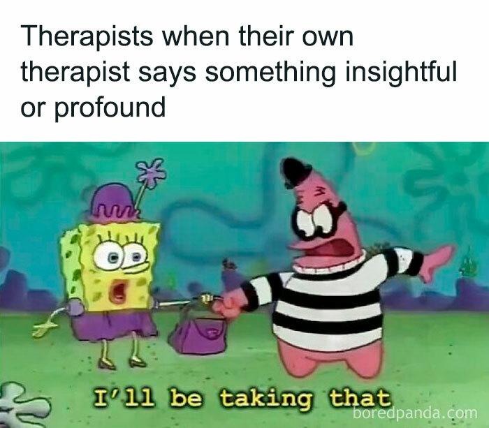 I will spare you the details on compassion fatigue as that is primarily an issue for providers and not clients as much. Basically, it is the weight that providers can carry from holding space for their patients or clients and worrying about them as most empathetic humans do. Increasing my tools is also fairly straightforward. Working with other therapists often helps broaden my horizon on tools and skills to try that I can then vet for myself and pass on to my own clients. I don’t really know any therapist who hasn’t done this if they receive therapy themselves. If you want to call me a thief then by all means, lock me up.